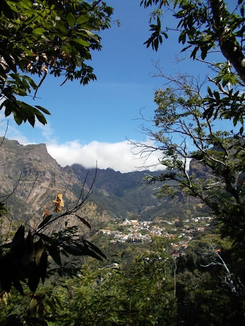 Oportunidad para disfrutar del sendero que desciende desde el hotel al pequeño pueblo que contemplamos cada día al levantarnos, Curral das Freias.